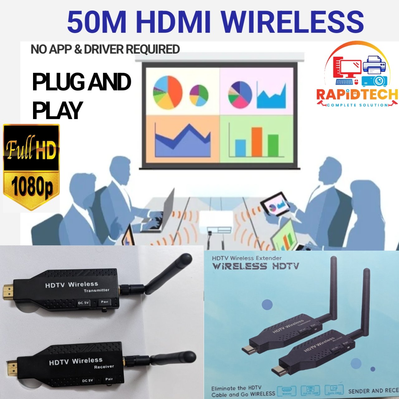 Upgrade your display experience with our 50M HDMI Wireless Extender, designed for seamless screen sharing without cables. Whether it’s office presentations, home entertainment, or digital signage, this device delivers crystal-clear Full HD 1080p output with zero delay.