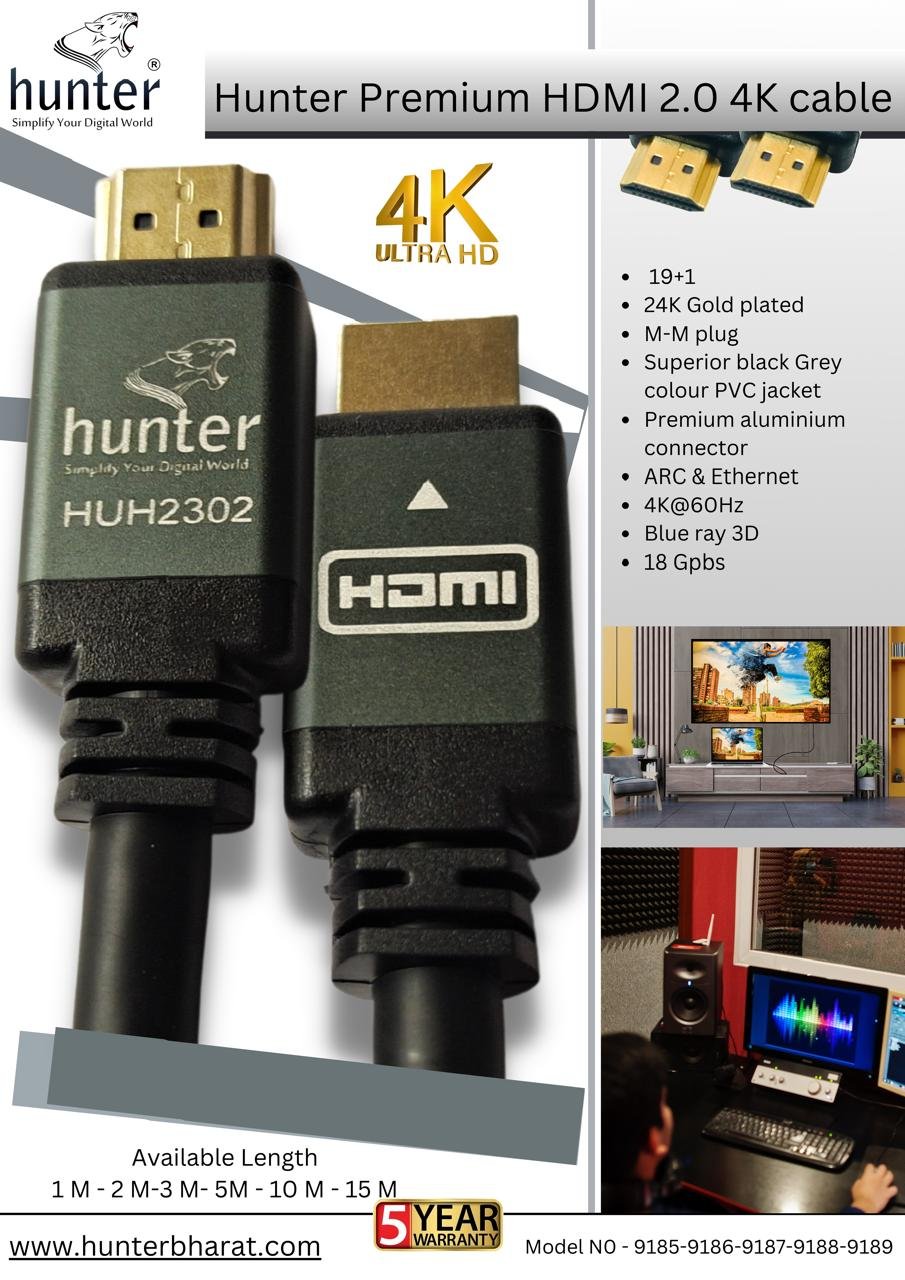 Hunter Premium HDMI 2.0 Cable – 4K Ultra HD (18Gbps High Speed)